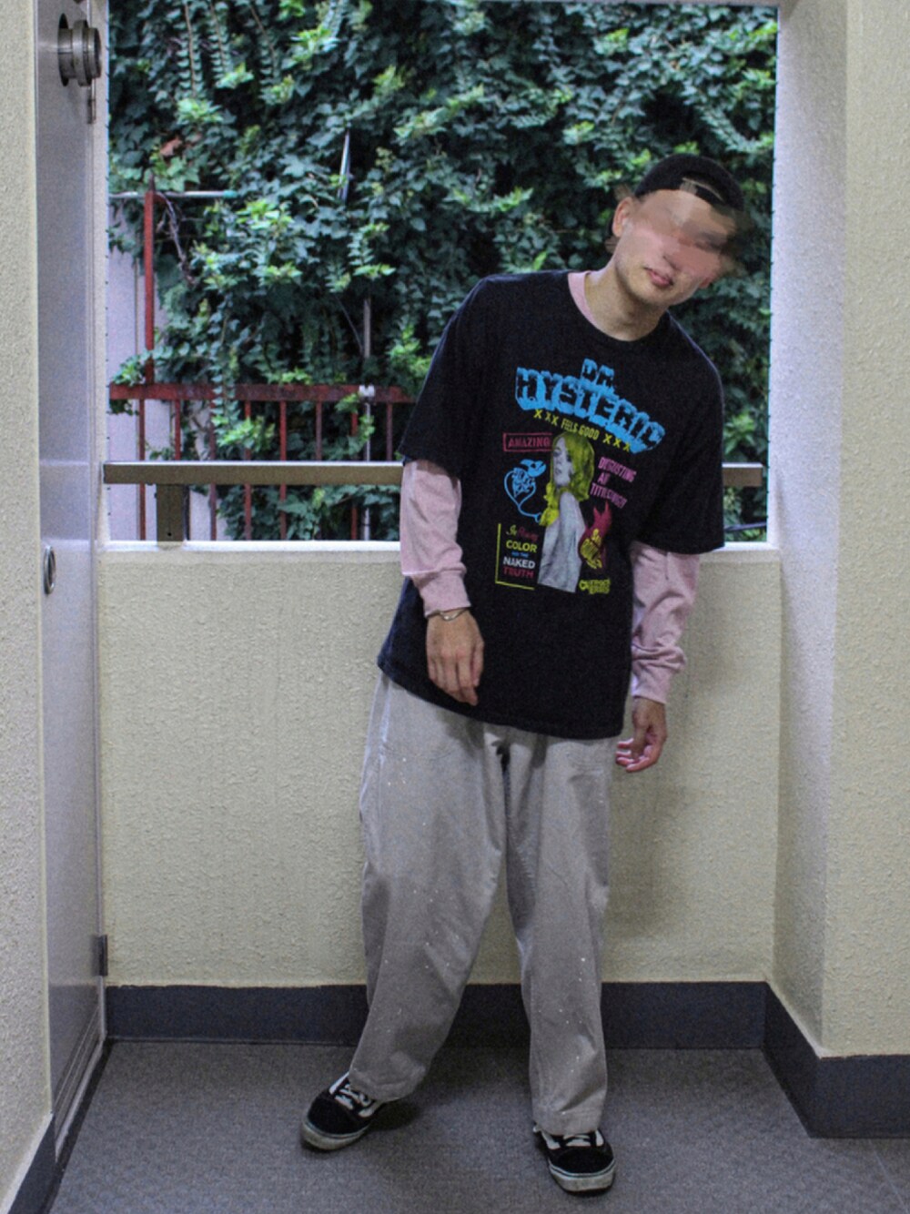 今回のテーマは「クソガキ」です!笑 オーバーサイズのTシャツからインナーの長袖を見せてクソガキ感(こんな日本語初めて使いました(笑))を露骨に演出 キャップも後ろ被りでパンツも極太、そこにオールドスクールはクソガキの中のクソガキ クソガキのゲシュタルト崩壊やあ〜(彦摩呂そんなこと言わんか、笑)