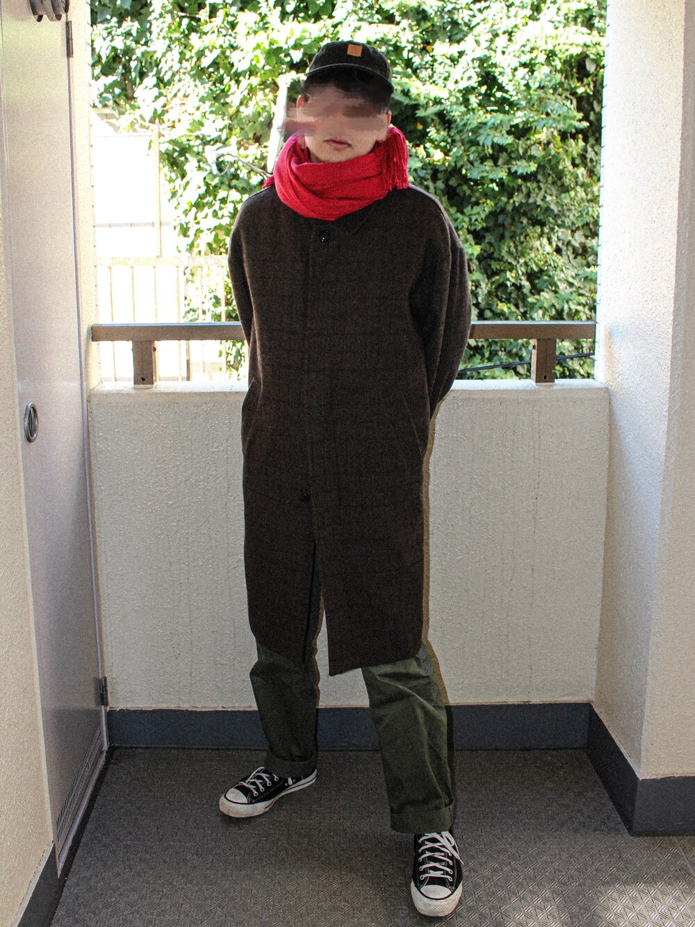 本日のテーマは「メリークリスマス🎄」です! カーキと赤の組み合わせはクリスマスツリーを連想させ、コートが完全に幹を表現しております🧑‍🎄 一年に一度のクリスマスなのでせっかくだから楽しみましょう〜