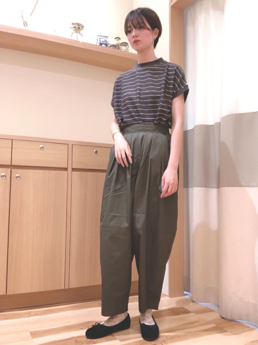 ご覧頂きありがとうございます✨ ~メンズライクコーデ🐊~ 丸みを帯びたシルエットのパンツとハイネックのボーダーTEEを合わせました!! ブーツやスニーカーを合わせるとよりメンズっぽくなります。 近頃、寒暖差が激しいのでアウターがあると🙆♀️ ※トップスは店頭にはないですが、パンツは全色ございます!!