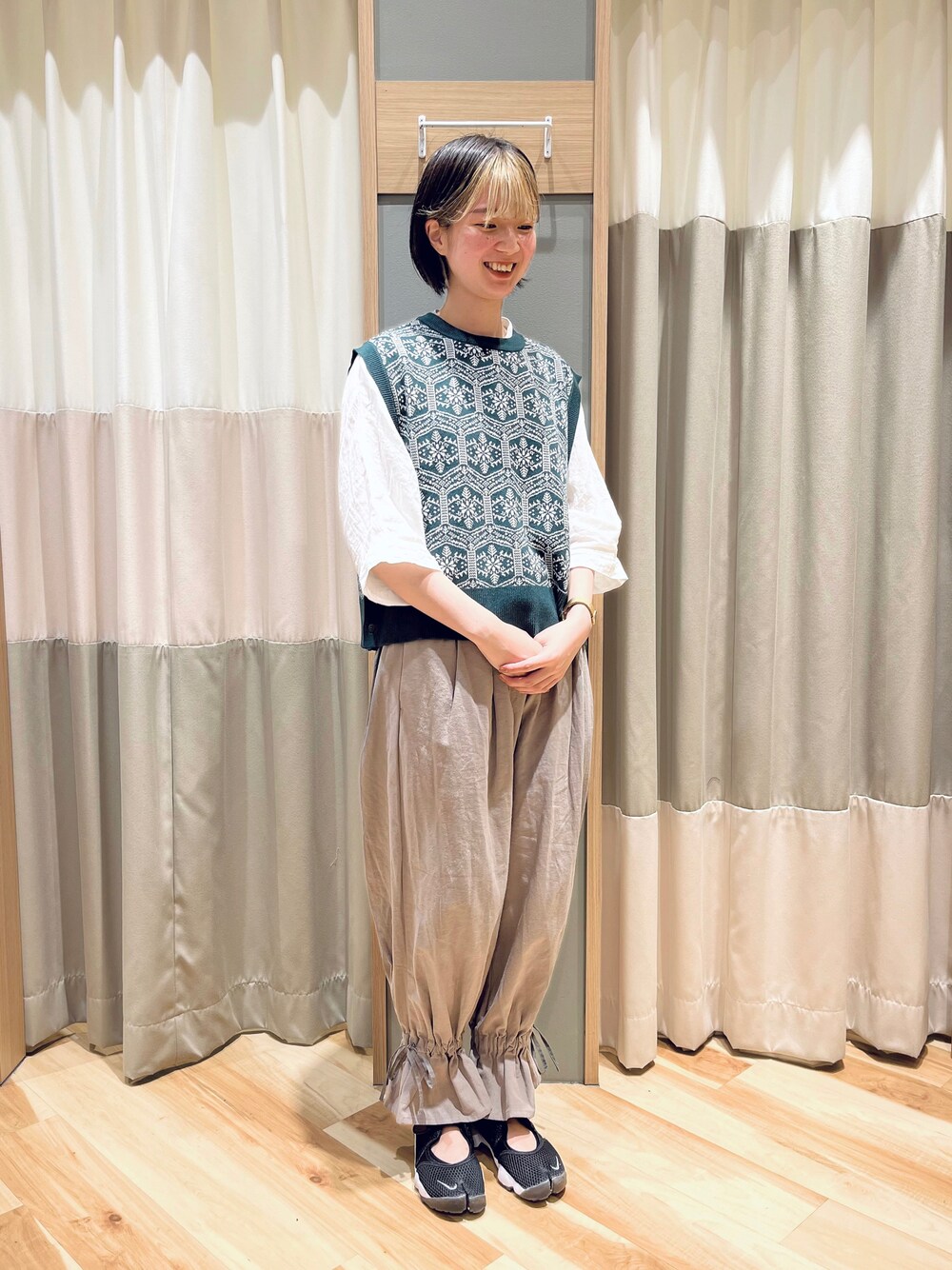 kahoのベスト「レースモチーフ柄ジャカードベスト」を使ったコーディネート