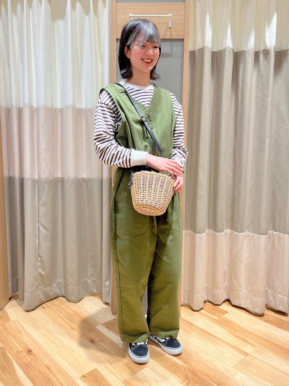 ご覧頂きありがとうございます✨ ~お散歩コーデ🌱~ 前ボタンが特徴的なサロペットコーデ、 ベルト通しがあるのでベルトで締めて シルエットを変えても可愛いです♡ ̖́-