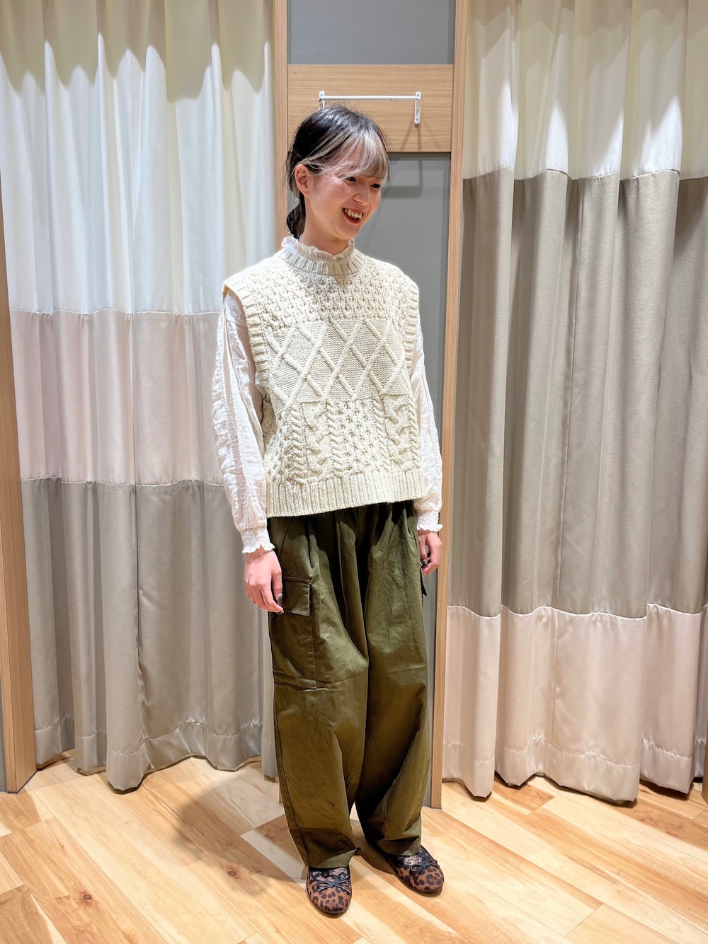 ご覧頂きありがとうございます.*・゚ ~重ね着カジュアルコーデ🌳~ FluffyWoolBlendの前後着ベストは、 温かみがある風合いで冬の重ね着に ぴったりです𖤣𖥧𖥣𖡡𖥧𖤣 大人気のカーゴパンツとの組み合わせが、 カジュアル好きさんにおすすめです ·͜·