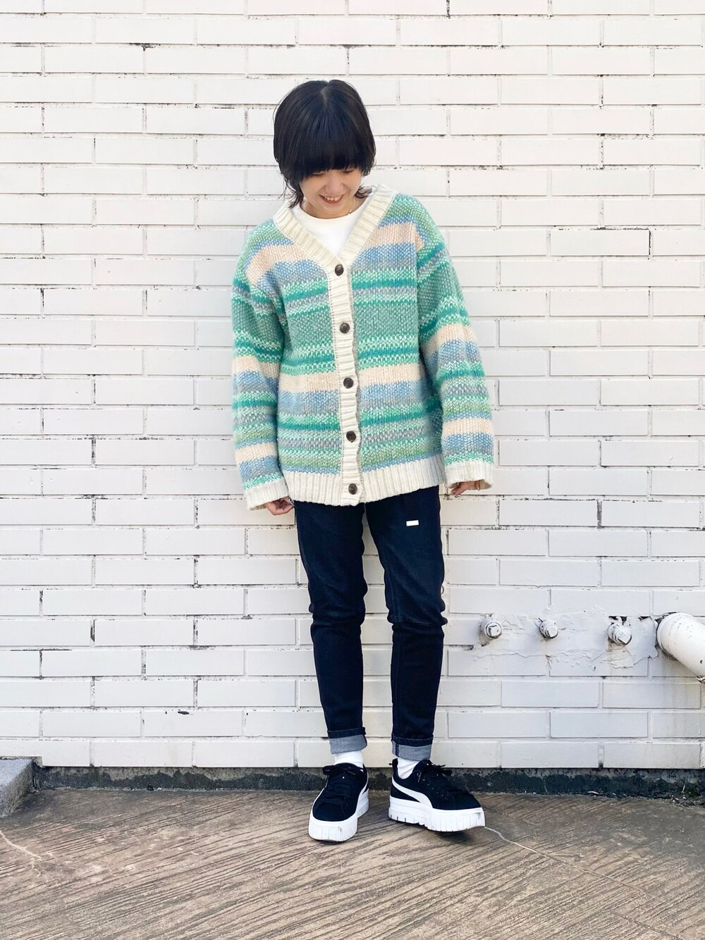 大人気の柄ニットカーディガン🌱 ニットでリバーシブル仕様になっているのがとても珍しいです👀✨ スリムサルエルパンツと合わせてメンズライクコーデにも🙆🏻♂️🌻