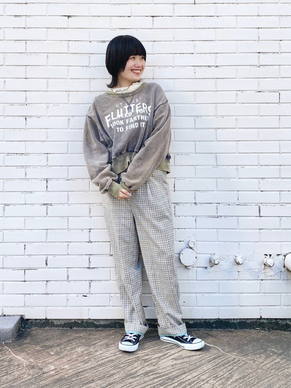 ふしみ(DOUBLENAME 新宿店)のその他パンツ「オリジナル先染めチェックゆるテーパードパンツ」を使ったコーディネート