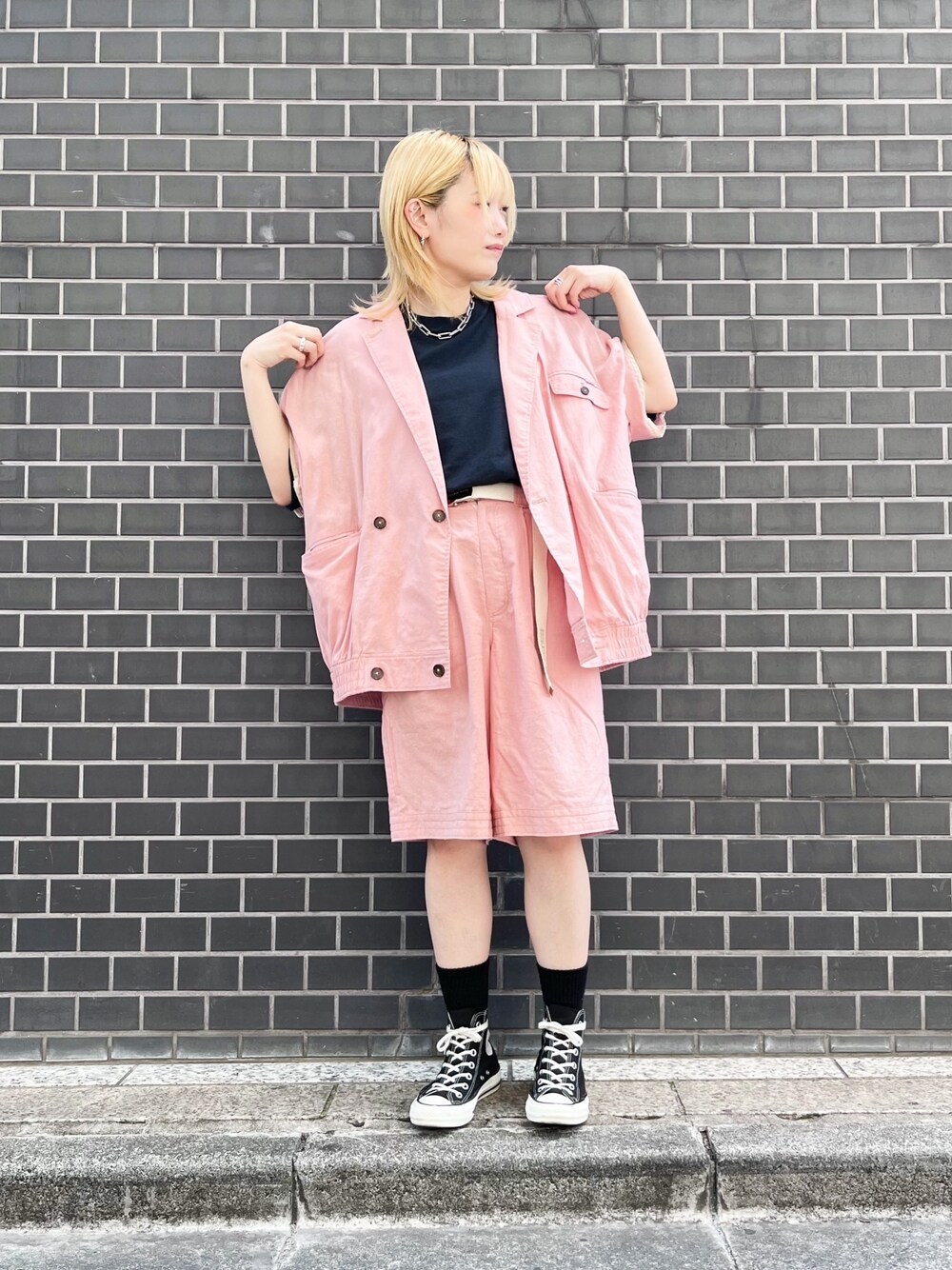 綿麻素材で暑い夏も涼しく過ごせるセットアップです🎶 メンズライクなサイズ感なので、ゆるっとしたオーバーサイズが好きな方にはとくにオオスメです!