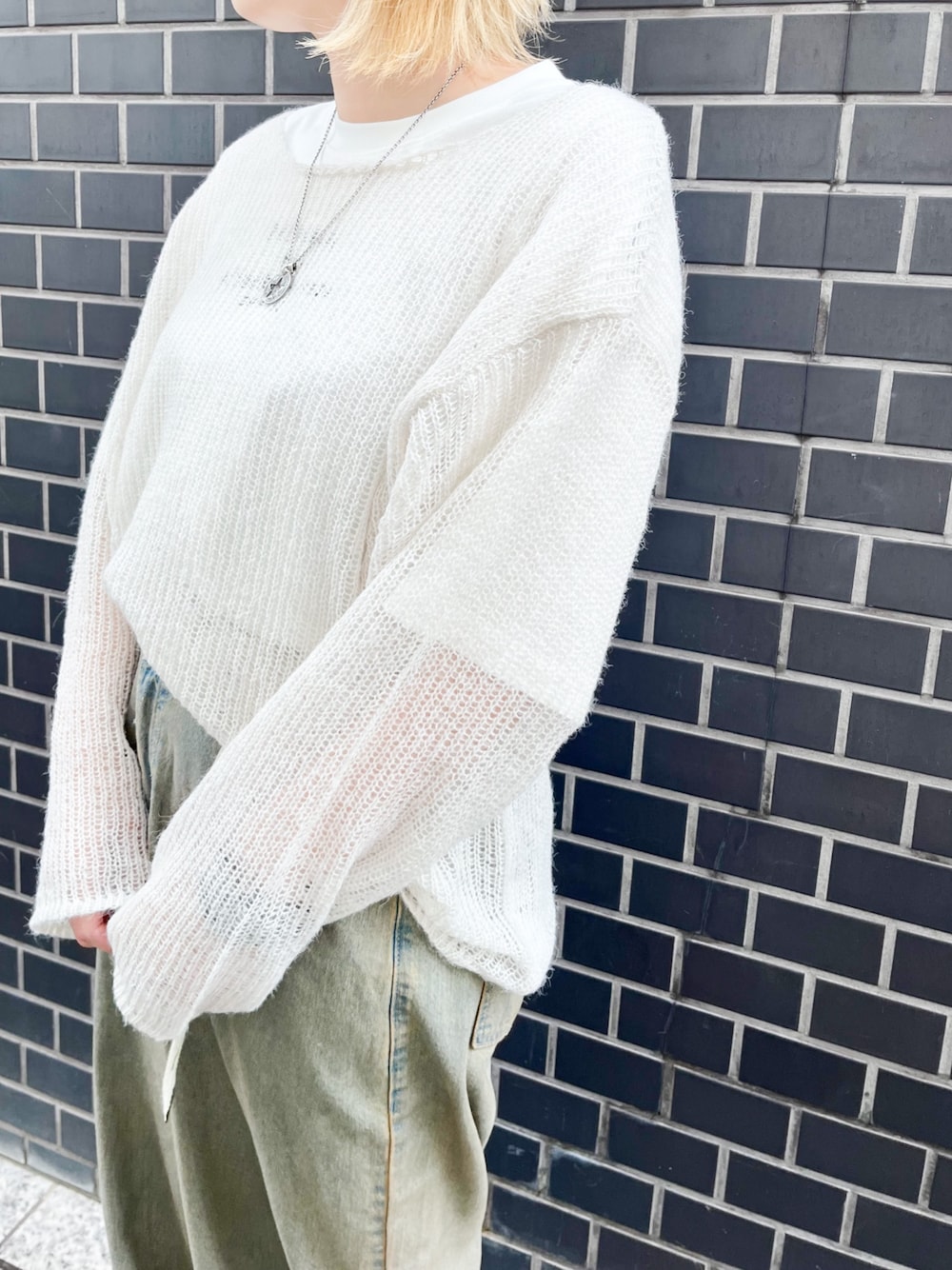 ふしみ(DOUBLENAME 新宿店)のニット/セーター「モヘアタッチシアーニットゆるプルオーバー」を使ったコーディネート