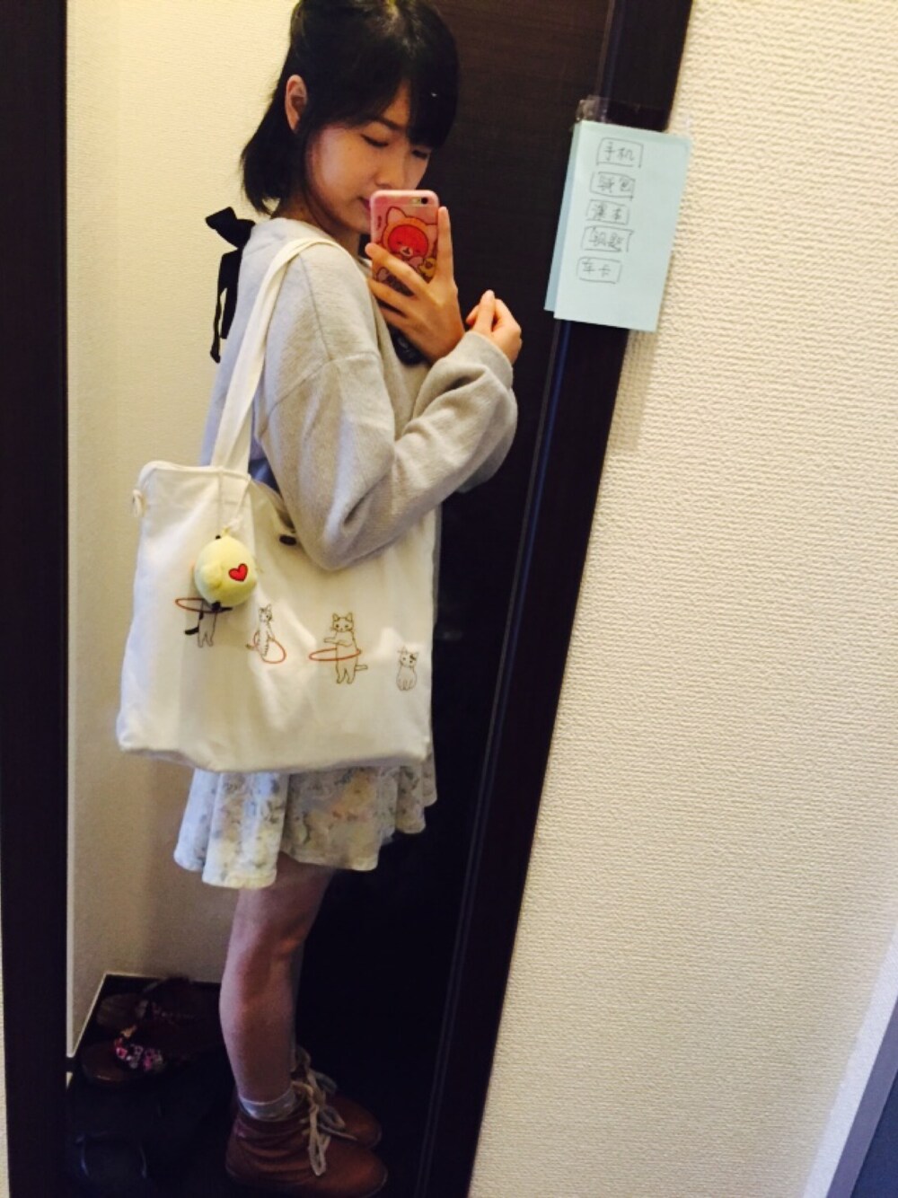 池袋のサンシャインで買った上着です。 ふわふわしていて、触り心地がとてもいいです! 後ろのリボンが可愛いポイントー