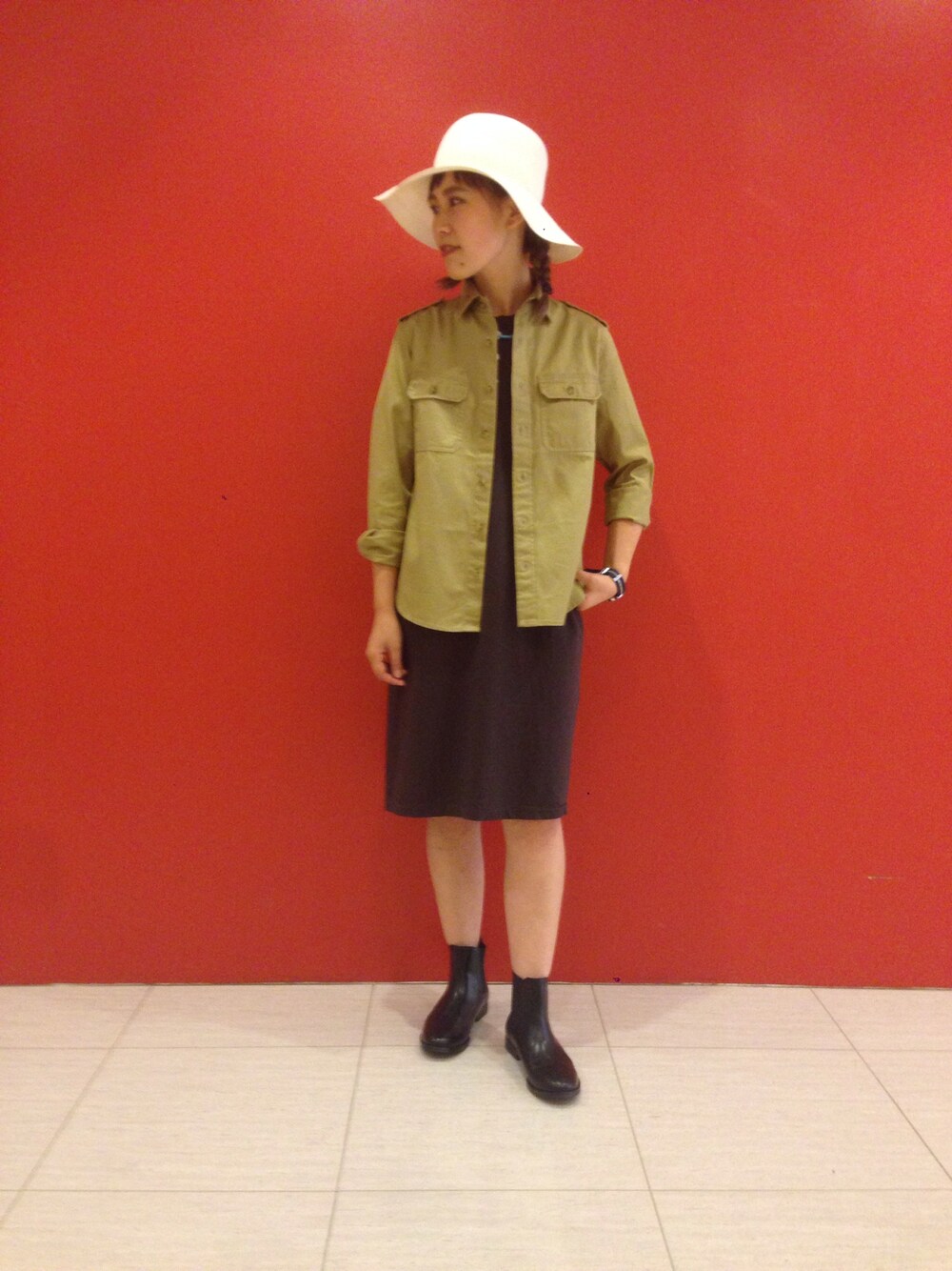 先ほどのヘンリーワンピースにサファリSHTをオン。夏から秋にかけても使えます!🍁