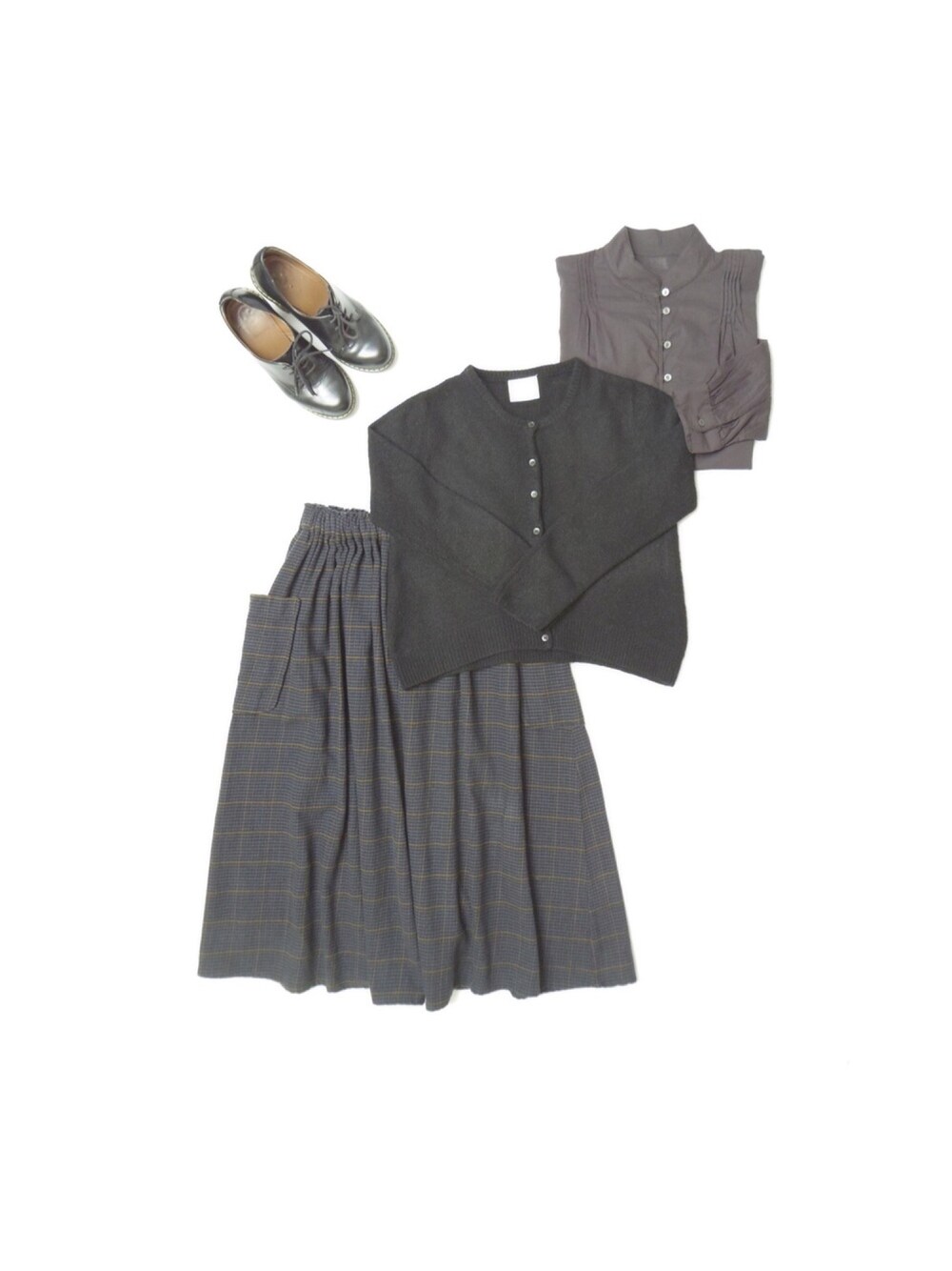 ビュルデサボンのチェックのスカートに ブラウス マーチンの靴を合わせて⡱₍˄·͈༝·͈˄*₎◞ ̑̑
