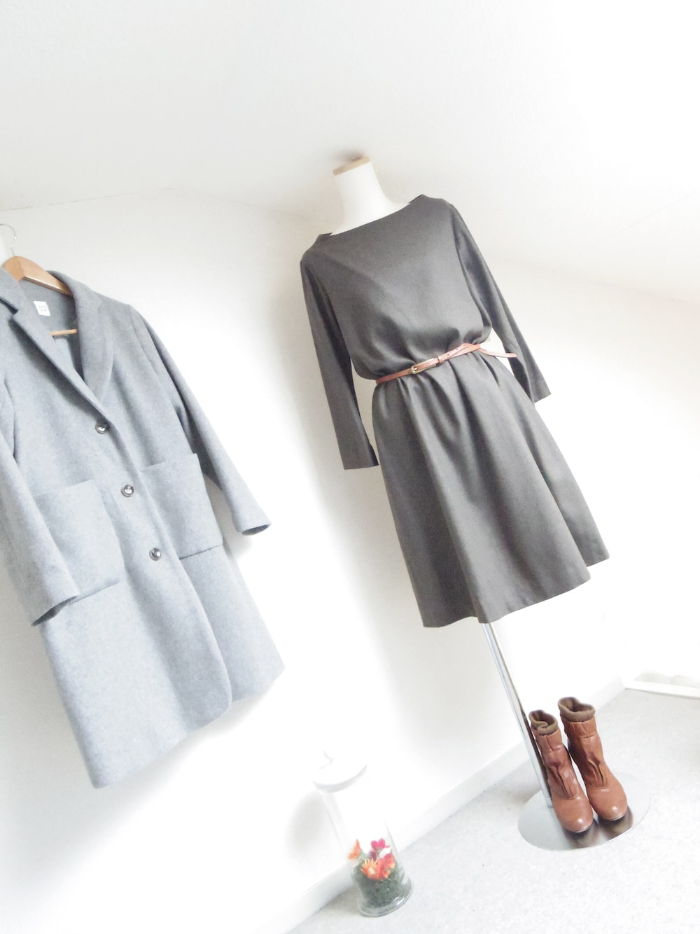 久しぶりにツモリのキャメルのブーツを履きたくなって カーキのフレアワンピに合わせてみたよ☻ キャメルの細めのベルトでキュっと 大人カジュアルに・:*ೄ‧͙·*. グレーのチェスターを羽織って キャメル×グレーのコーデ*¨*• ♡