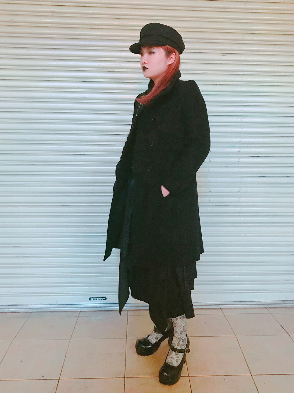 ブラック系のジャケット/アウターを着用したレディースの春コーディネートの1枚目の写真