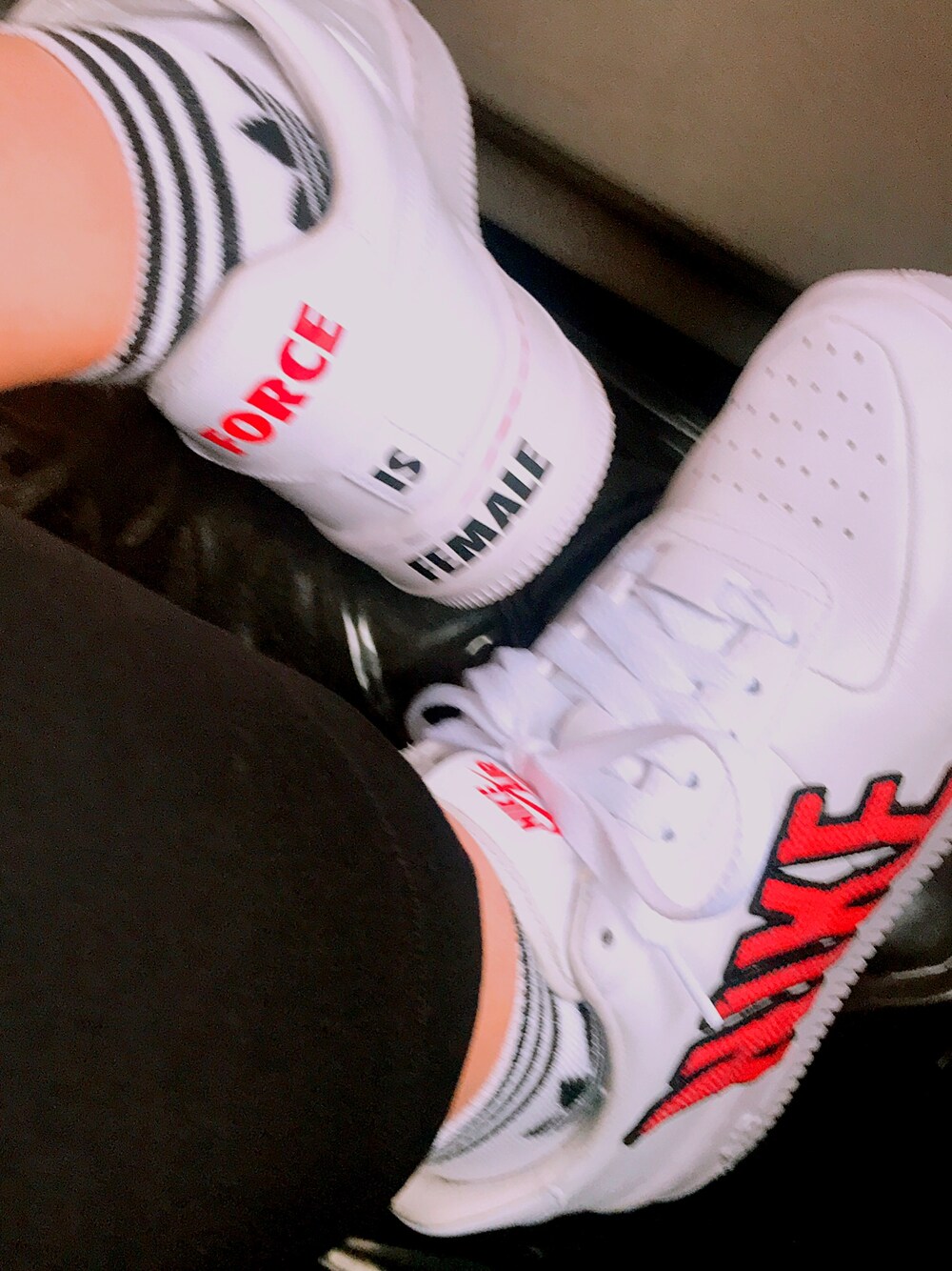 momoのスニーカー「NIKE W AF1 UPSTEP LX (WHITE/WHITE-BLACK-HABANERO RED)【SP】」を使ったコーディネート
