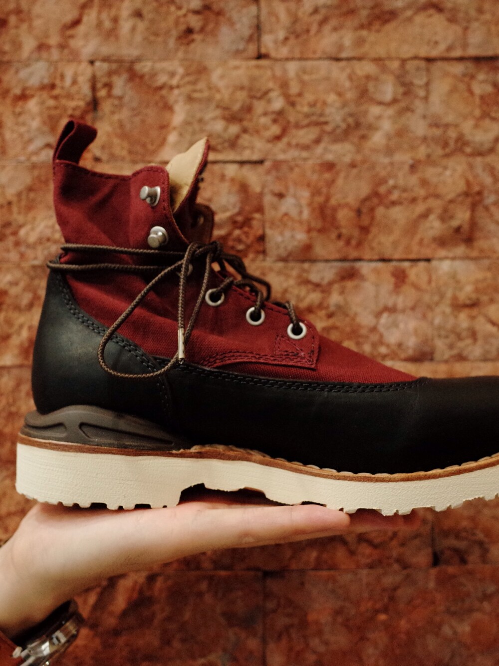 レッド系のブーツを着用したメンズの秋コーディネートの1枚目の写真