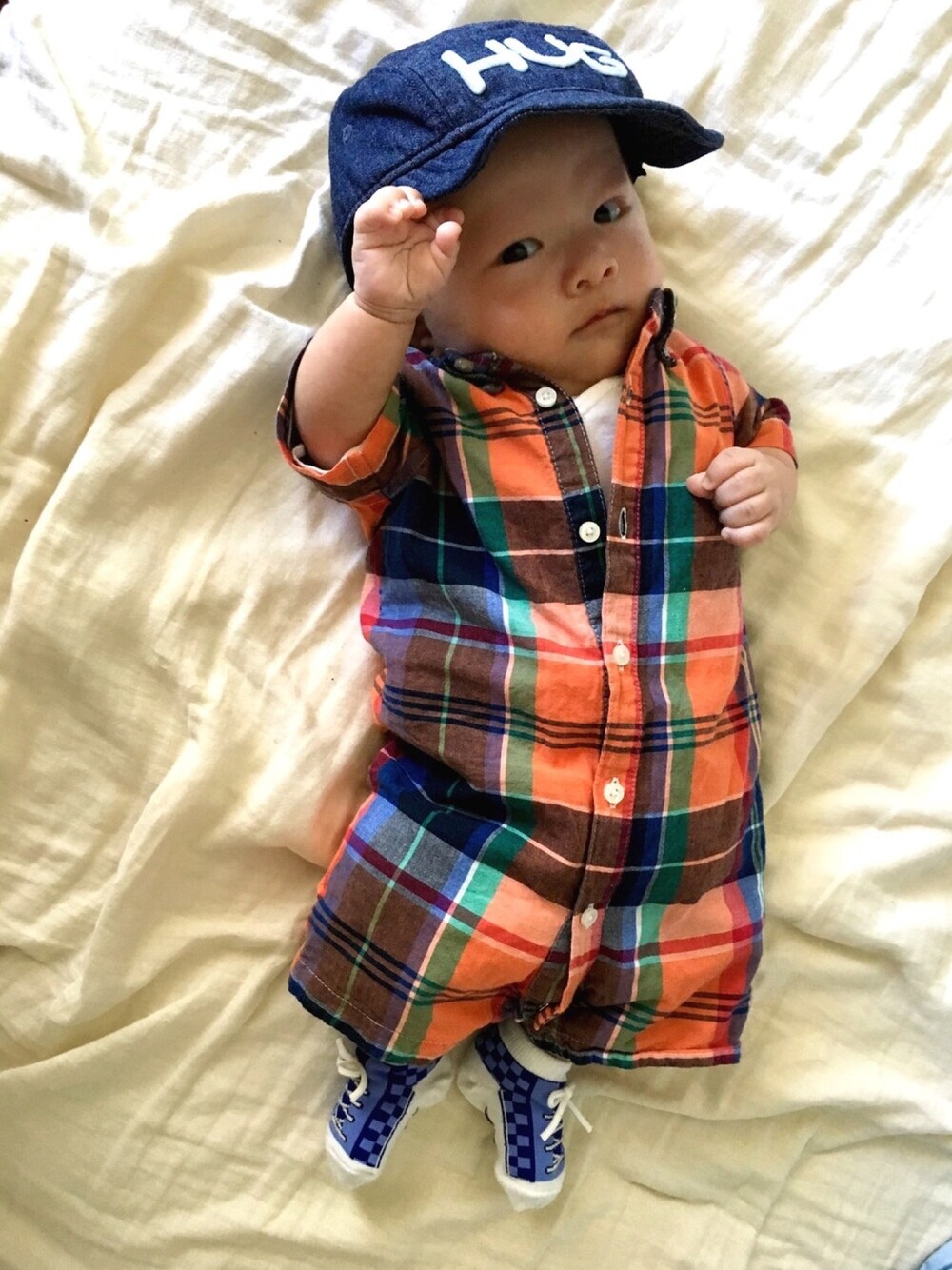 46の帽子がぶかぶか…まだオシャレ帽子で合うサイズがなかなかない。まつげは少しずつ増毛中だけど、眉毛はまだない麻呂スタイル(´∀`)