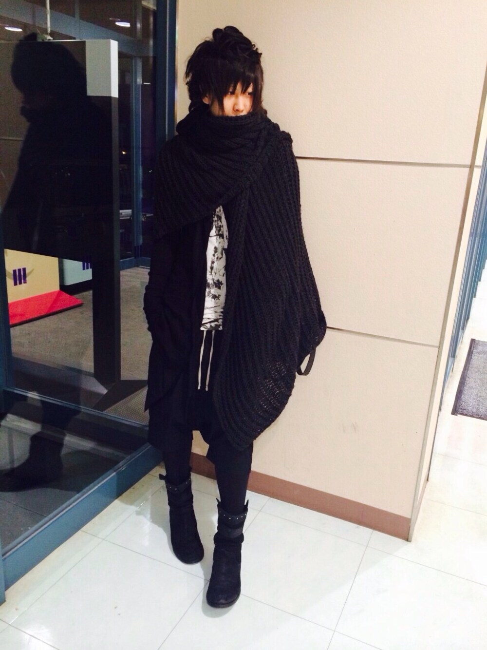 旅人風なコーデで( ´ ▽ ` )ノ リックのマフラーはかなり使い勝手が良い感じで重宝してます⭐️ この間GETさせていただいたロングカーデ凄く良い感じ^_^ アルパカ100%なので、薄手でも暖かいってゆー^_^