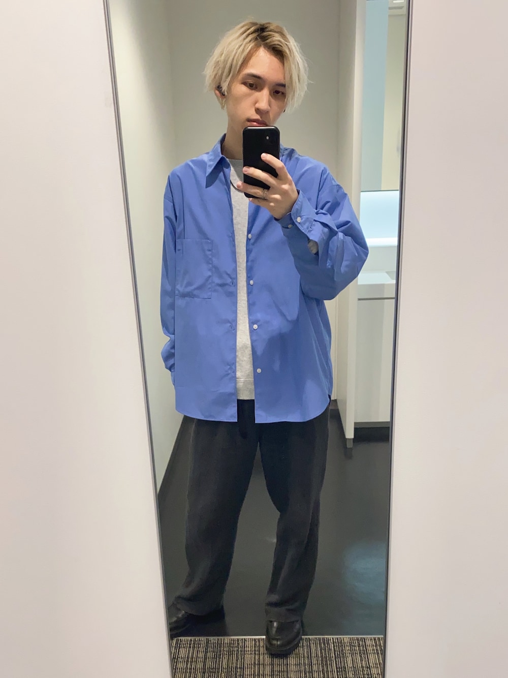 見ていただいてありがとうございます!! ーーーー ブルーのシャツに中はグレーのスウェット、ブラックのパンツを合わせたコーディネート 春の装いにこのブルーのシャツは映えるから何回でも着てしまう 🐬🐳💧 ーーーーー 良いと思っていただけたら、フォローやいいねよろしくお願いします!