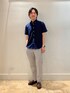 大人カジュアルコーデ シャツ ノーリーズ定番、吸水速乾に優れたドライマスター素材のシャツ ドット柄がこなれ感をプラス 柄で見ると可愛いですが、ネイビー地に載せることでスッキリとスマートな印象に ボトムス 無数の微細な空気孔を持つポリエステルの快適素材COOL DOTS(R)を採用したイージーパンツ 着ていないかと錯覚するぐらい軽い素材感 シワにもなりずらいのでガシガシ洗濯機で洗って頂けます ボトムスは明るいライトグレーを合わせて上下の濃淡をはっきり分けることでスマートな印象に