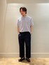ジャストサイズがMサイズのところをあえてワンサイズアップで合わせることでカジュアルな雰囲気に ボトムスも少し太めにすることで上下のバランスを取りました