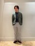 カジュアルジャケットコーデ トップスをくすみカラーで合わせながらもボトムスで明るいはっきりとした色を合わせることで野暮ったさを打ち消したジャケットコーデ ジャケットに使用されているDOTAIR素材は通気性抜群ながら、伸縮性にも優れているのでストレスフリーで着やすいです