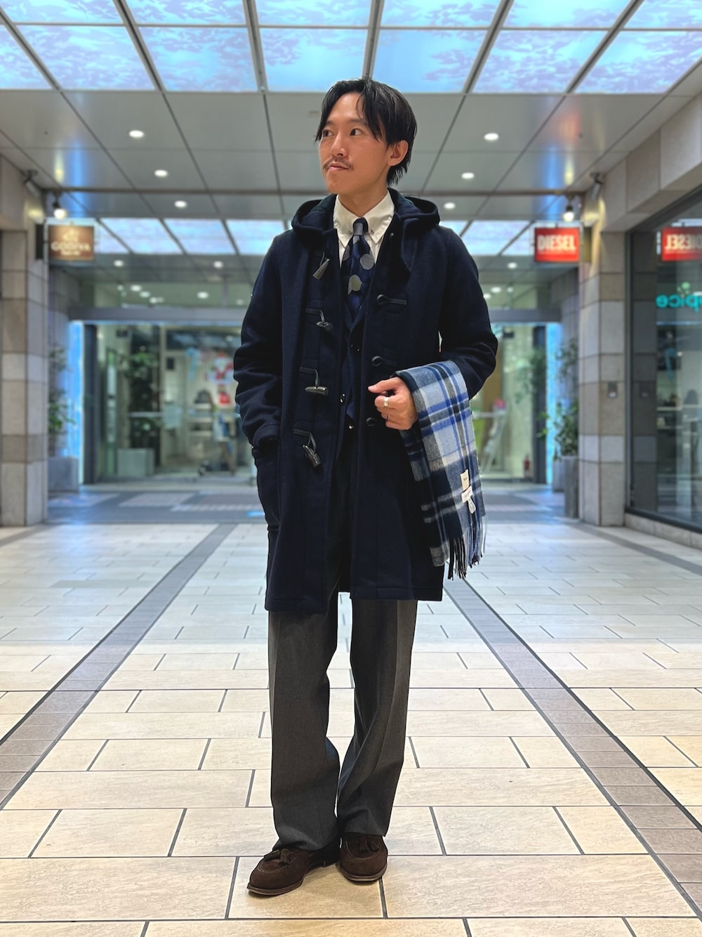nishiokaのマフラー「カシミヤチェックマフラー30 オルドス産カシミヤ100%使用 30cm幅」を使ったコーディネート