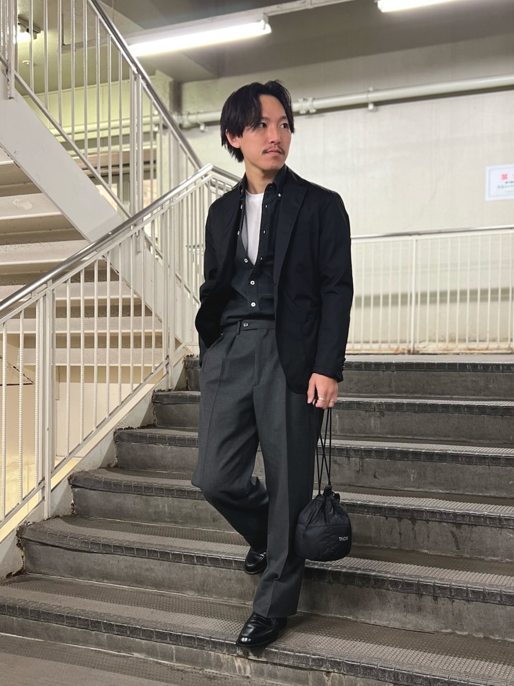いつもいいね、saveありがとうございます! 是非フォローお願いいたします! ナイロンジャケットを使ったブラックワントーンコーデ 生地メーカーLIMONTA×KOMATSUの 技術の詰まった撥水ナイロン生地を使用した ナイロンテーラードジャケット しわに強く、今時期はニットに合わせたりと異素材の組み合わせが楽しみやすいアイテム コンパクトなサイズ感のためMサイズ着用でラフに合わせました 着用サイズ ジャケット:Mサイズ シャツ:Sサイズ 身長169cm,体重56kg,細身体型 Instagram @shin_nol