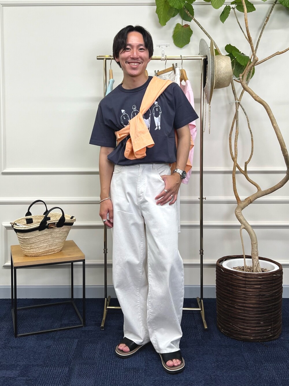 夏のカジュアルコーデ ワントーンコーデに夏らしくオレンジカラーをプラス ヴィンテージ加工の雰囲気のあるTシャツ パンツはホワイトデニムを合わせてクリーンな印象に 着用サイズ Tシャツ:Mサイズ パンツ:Mサイズ 身長169cm,体重56kg,細身体型 Instagram @shin_nol
