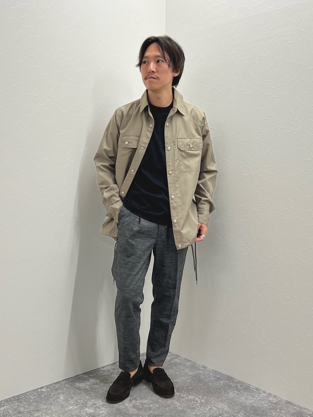 いつもいいね、saveありがとうございます! 是非フォローお願いいたします! ベージュを基調としたカジュアルコーデ シワ、裂けに強いナイロン素材のシャツアウター 身幅も広めでリラックスして羽織れる1枚 インナーには羽織りの襟元を守ってくれるハーフモックネックロンT パンツは1タックで腰回りにゆとりを持たせながら、 テーパードが効き、足に引っかかりを少なくしてスッキリきれいに見えるシルエットです 着用サイズ シャツ:Mサイズ カットソー:Mサイズ パンツ:Mサイズ 身長169cm,体重56kg,細身体型 Instagram @shin_nol