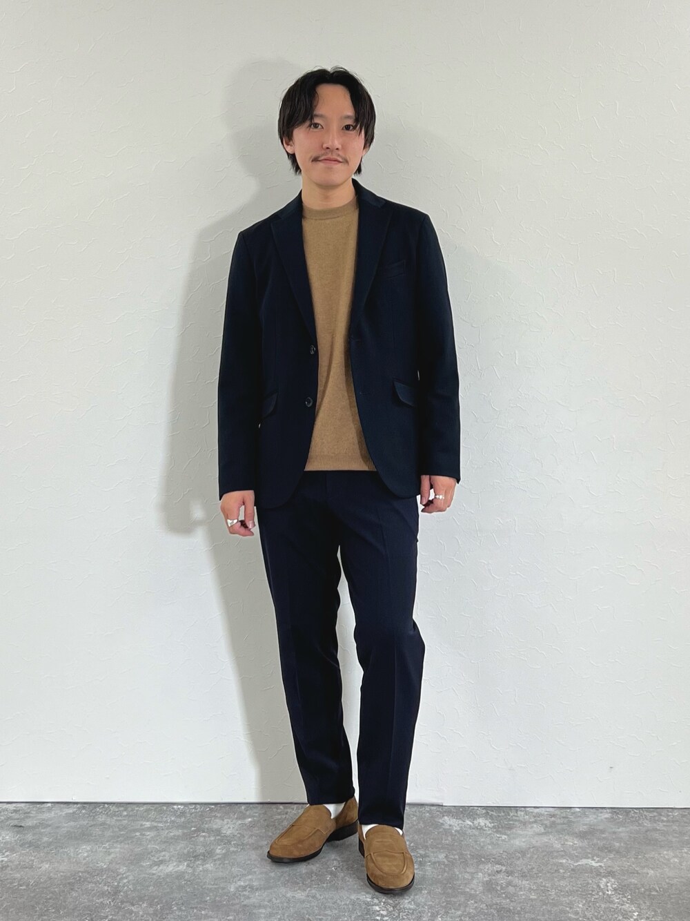 いつもいいね、saveありがとうございます! 是非フォローお願いいたします! 秋冬セットアップコーデ ジャージ素材のきれいめセットアップ 濃紺をチョイスし、黒に近い深い色味ながらよく見るとヘリンボーン柄の生地 ネイビー×ベージュでまとめてスマートながらに優しい印象のコーデにまとめました 着用サイズ ジャケット:Mサイズ ニット:Mサイズ パンツ:Mサイズ 身長169cm,体重58kg,細身体型 Instagram @shin_nol