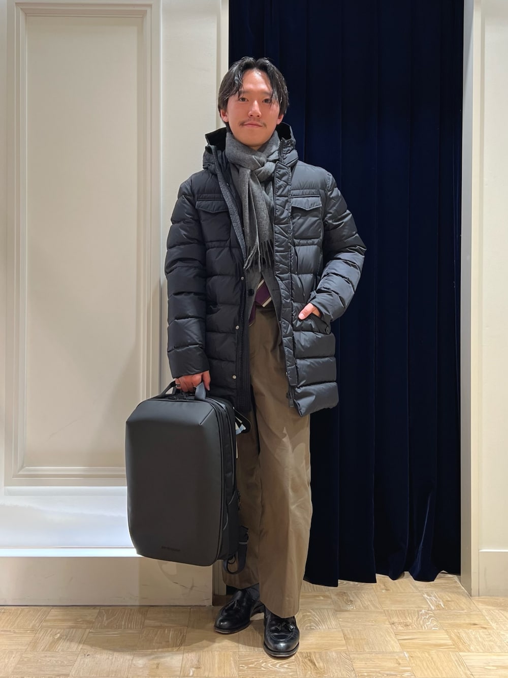 いつもいいね、saveありがとうございます! 是非フォローお願いいたします! HERNOの定番ダウンジャケットを合わせたジャケットコーデ ブラックのアウターに合わせてジャケット、マフラーはグレーカラーを合わせてモノトーンにしながらも、パンツにオリーブを合わせてラギットな印象にしました ポーラテック素材を使用し、しなやかさと上品な光沢感を合わせもった生地を使用 ウエストにシェイプも入れてスッキリしたシルエット ヒップもしっかり隠れる着丈でジャケットの裾が出ることなく安心感のある着丈 きれいめコーデにぴったりのダウンジャケットです 48サイズ着用でジャケットウエストから余裕をもって着れました ジャストは46サイズ マフラーはカシミヤ100%で様々なコーデに合わせやすいソリッドな単色マフラー バックはberufのハイエンドモデルのURBAN EXPLORER PRO PCを仕分けて持ち運べる他、定番モデルにない容量で早くも人気です 着用サイズ ダウンジャケット:48サイズ ジャケット:Mサイズ 身長169cm,体重58kg,細身体型 Instagram @shin_nol