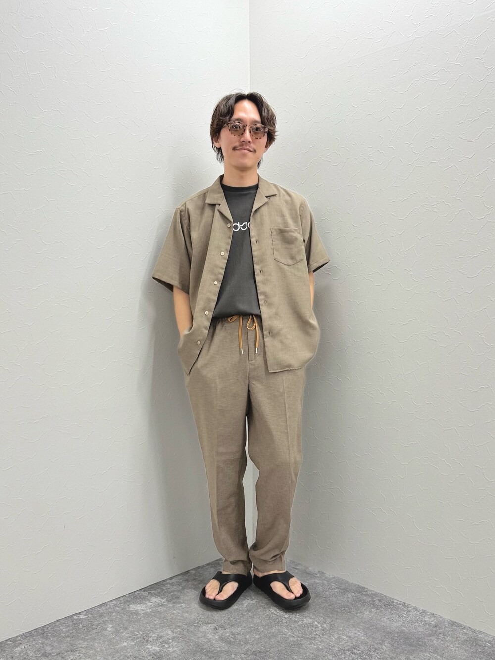 いつもいいね、saveありがとうございます! 是非フォローお願いいたします! 夏のカジュアルセットアップコーデ 麻調素材でシャリ感のある夏でも涼しい生地を使用したカジュアルセットアップ リラックスした印象のオープンカラーシャツに少し太めのイージーパンツ ベージュカラーにチャコールグレーのロゴTシャツを合わせて全体の色味を引き締めました サンダルはMEIのトングサンダル 厚みのあるソールでクッション性も抜群です 着用サイズ シャツ:Mサイズ Tシャツ:Mサイズ パンツ:Mサイズ サンダル:Mサイズ 身長169cm,体重60kg,細身体型 Instagram @nishioka_nol