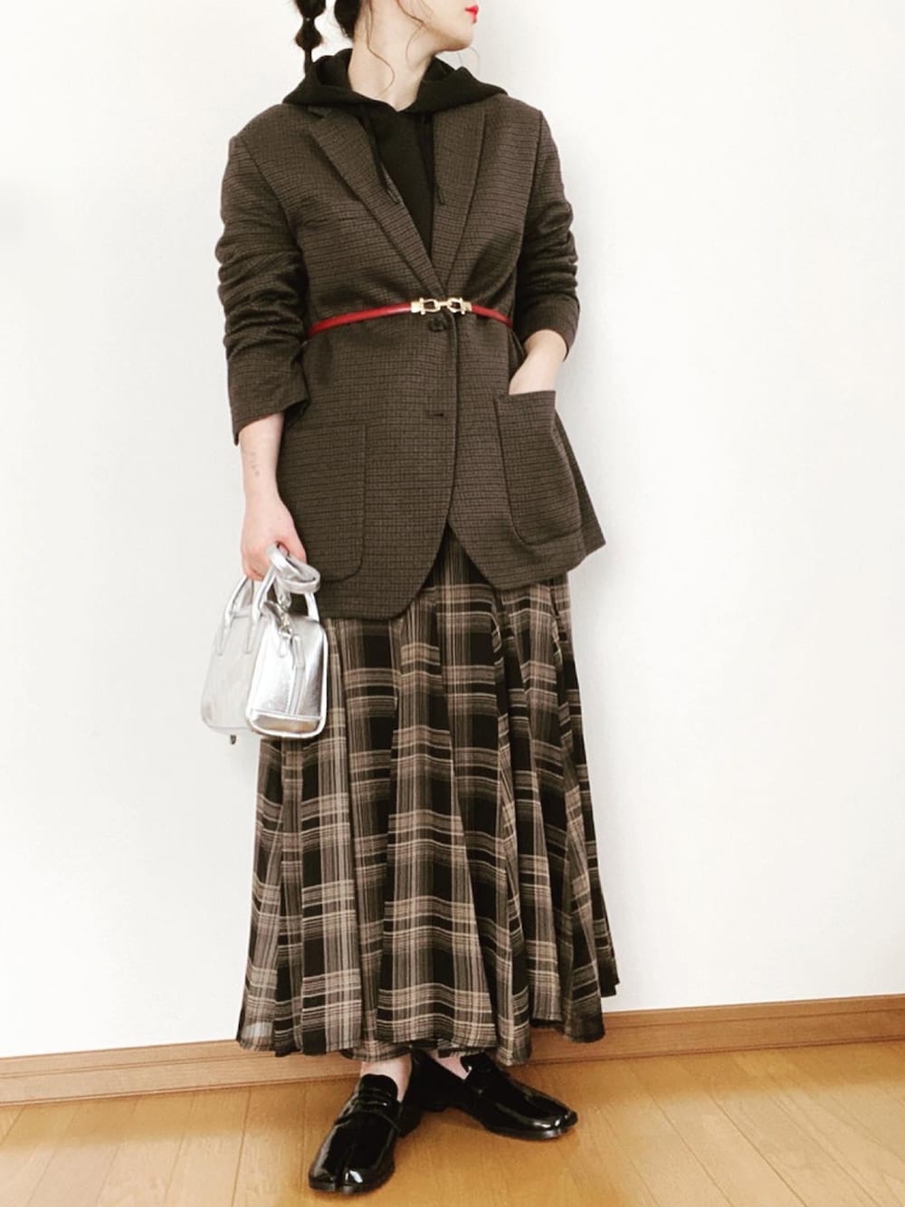 しんしんのその他アウター「コンフォートジャケット(ガンクラブチェック・袖丈着丈短め)」を使ったコーディネート