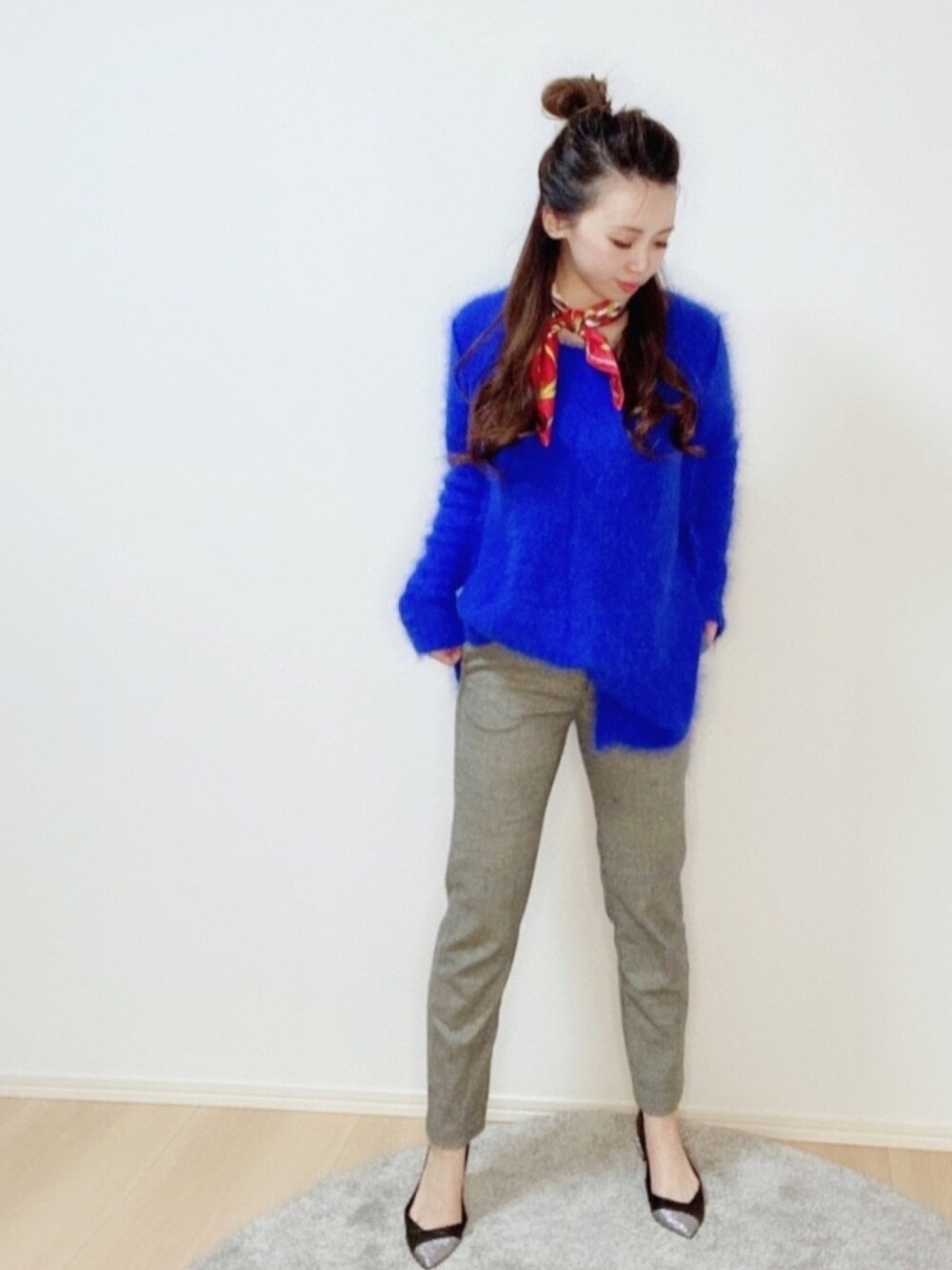 Nao☆です🐶🎉⭐️ 本日は【ブルーな日コーデ】です🥺☔️🌪 毎日色んな日があって、もちろんハッピーな日も ブルーな日も☔️☃️🥶 そんな時はあえてブルー推し😚👍 鮮やかなブルー色のニット🧶は フワフワで可愛くて服装から気分もUP↑💓😋🎉 《Instagram→ sinc.nao》