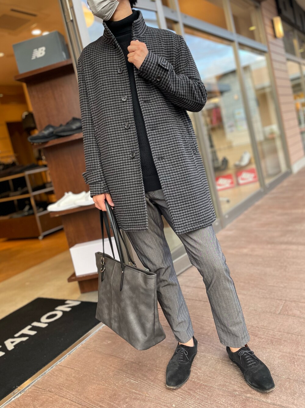 プーのチェスターコート「【EFFORTLESS】中空糸メルトンスタンドカラーコート」を使ったコーディネート