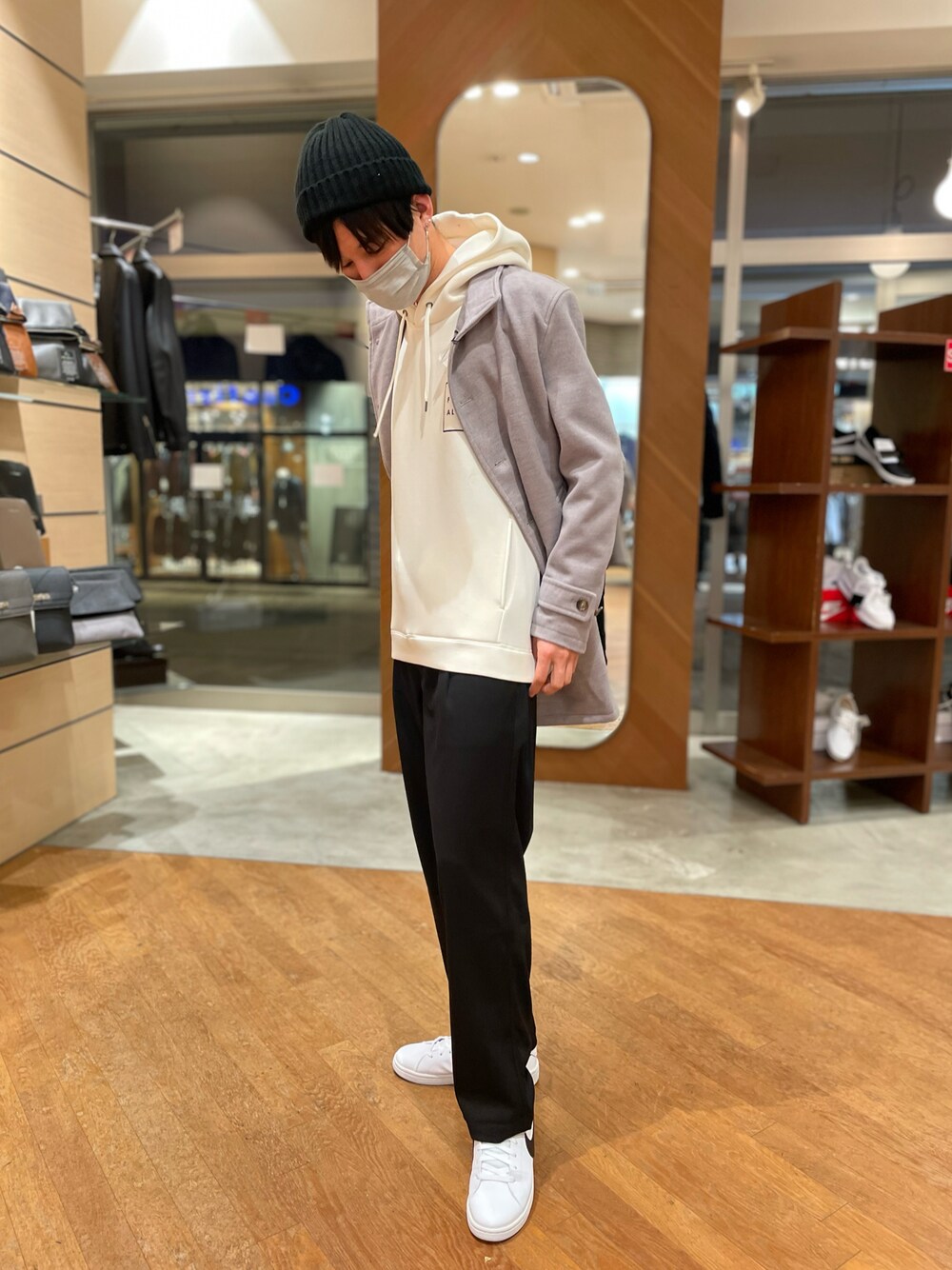 プーのチェスターコート「【EFFORTLESS】中空糸メルトンスタンドカラーコート」を使ったコーディネート