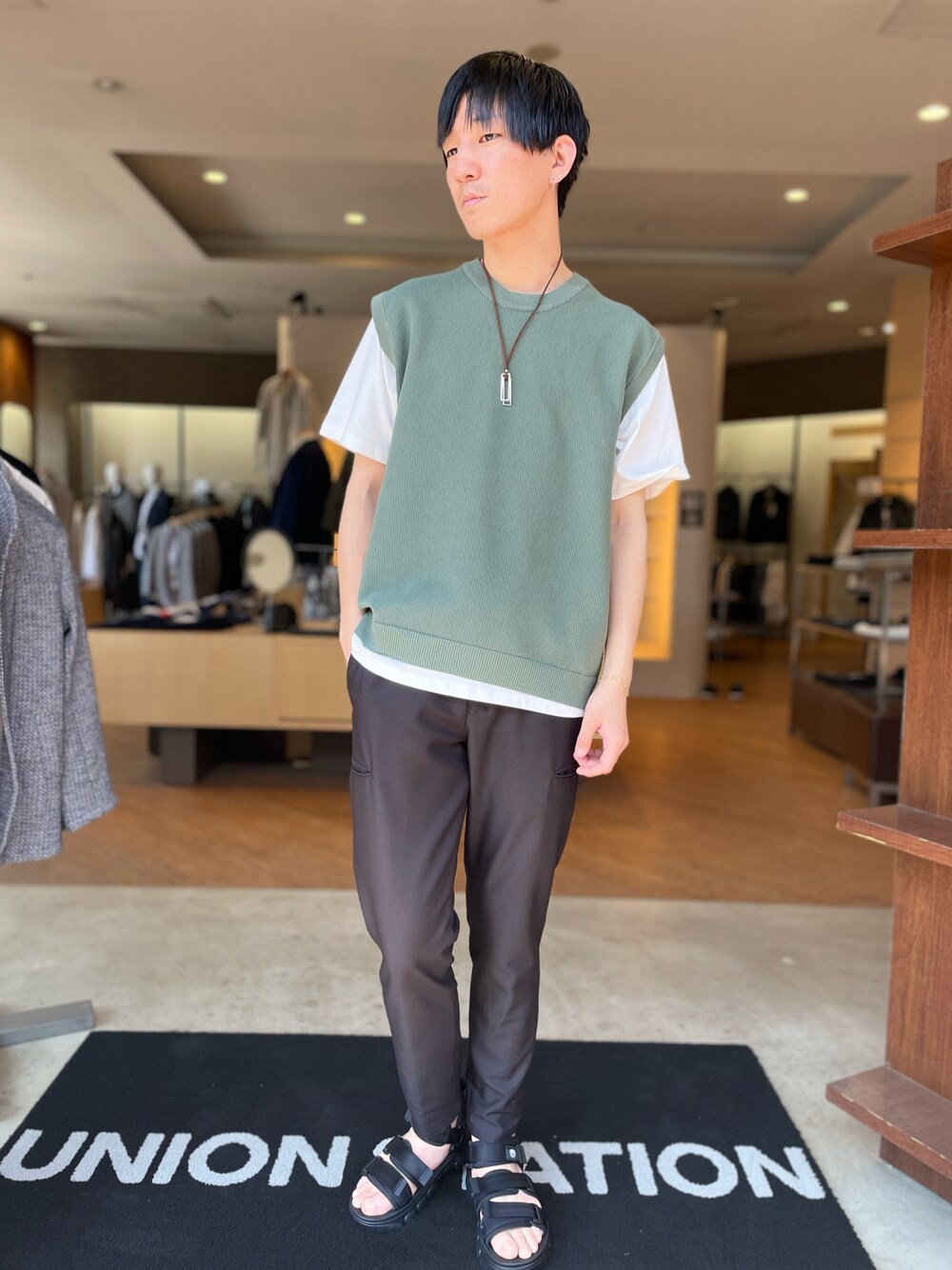 プーのニット/セーター「ニットベスト&ナチュラルストレッチTシャツ(2点セット)」を使ったコーディネート