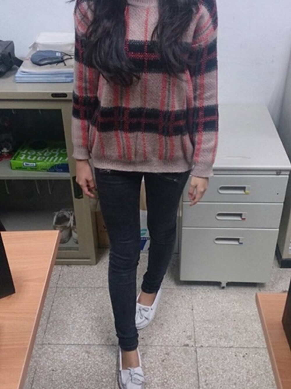 上衣:淘寶寬鬆風格紋毛衣 褲子:淘寶墨小樓3067