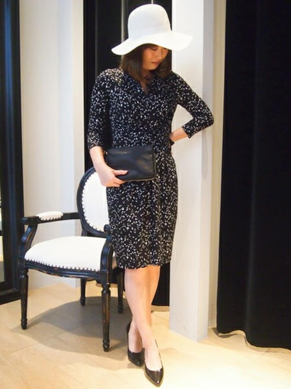 エレガンスな印象のワンピースコーディネート♡ デートやもちろん普段着でも◎!! 上品で落ち着いた印象を与えてくれます♡ 結婚式や二次会などのパーティシーンにも◎! ウエストはベルトでマークするとスタイルアップにも☆
