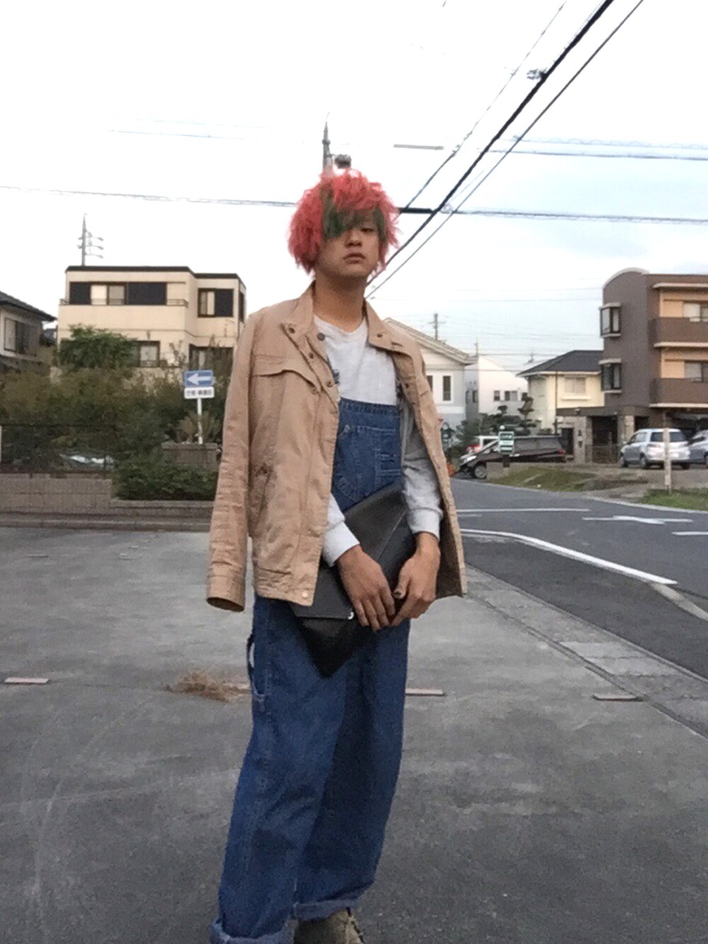お気に入りのオーバーオールを着てパシャリ そろそろ冬物を出さねばって感じですよね あ、あと髪色を染めました