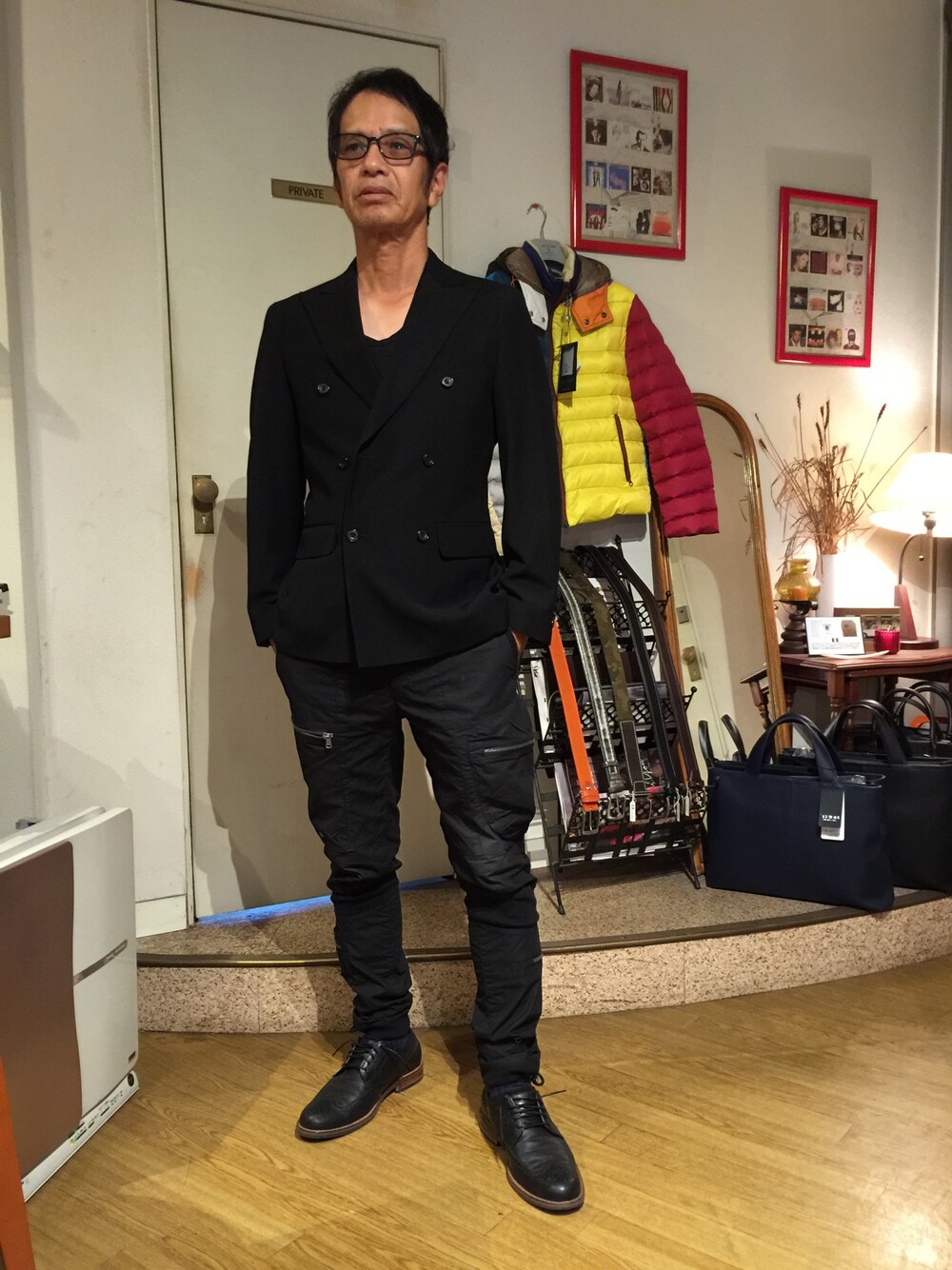 2、3年前に作った黒スーツのジャケットとカーゴパンツでコーディネートして見ました‼︎