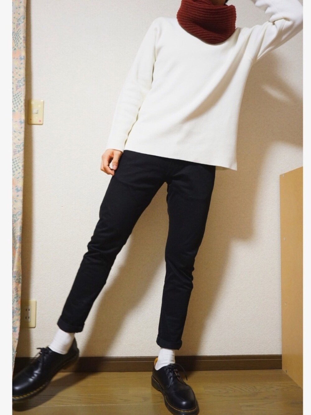 秋のニットコーデ🍁🍁🍁 モノトーンでシンプルに!!! スヌードで赤色をプラスしてみました! 台風が近づいてきてますね!気をつけてください!!! このコーデめっちゃ参考になるやん!!!って少しでも思ったら、是非「フォロー」「いいね」「お気に入り」お待ちしてます🤗 ------------------------ snood [Free] knit [L] pants [31] shoes [27]