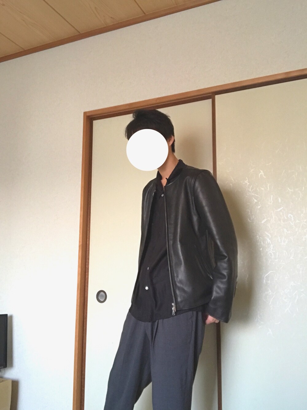 中に着てるシャツは刺繍シャツですが、、、何回やってもうまく撮れなかった…😞 今日は暖かいからライダース暑いかも…🤔