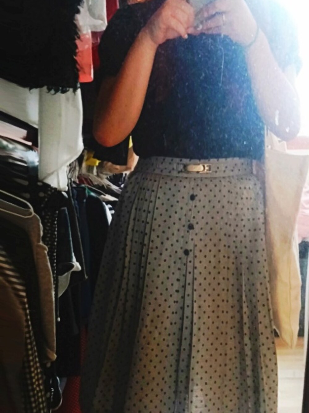グレー系のスカートを着用したレディースの夏コーディネートの1枚目の写真