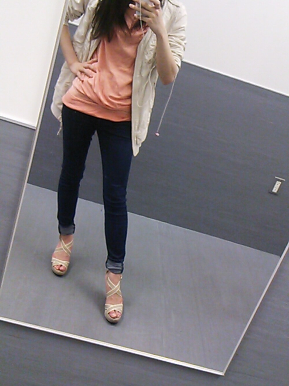 少し前のコーデ(*^^*) ホワイト系のアウターで防寒しつつ オレンジのインナーで春っぽく!