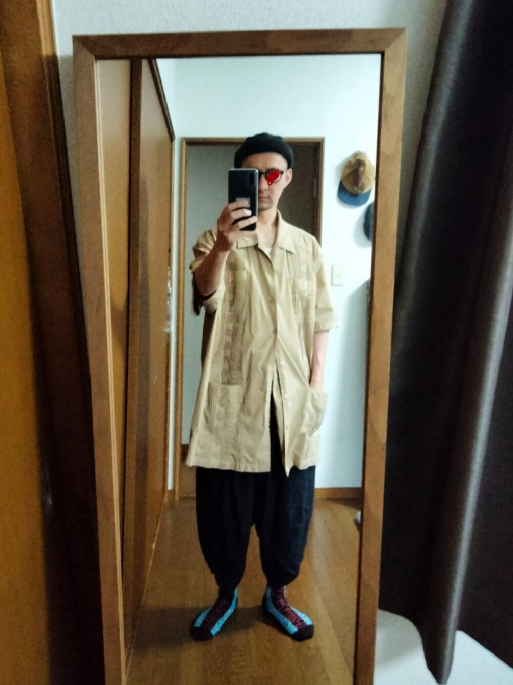 デカいキューバシャツ、ポケットが4つ付いてるサムソンティーチャー使用。