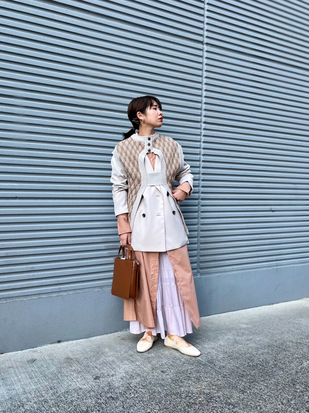 shihoのベスト「バックオープンジャガードベスト」を使ったコーディネート