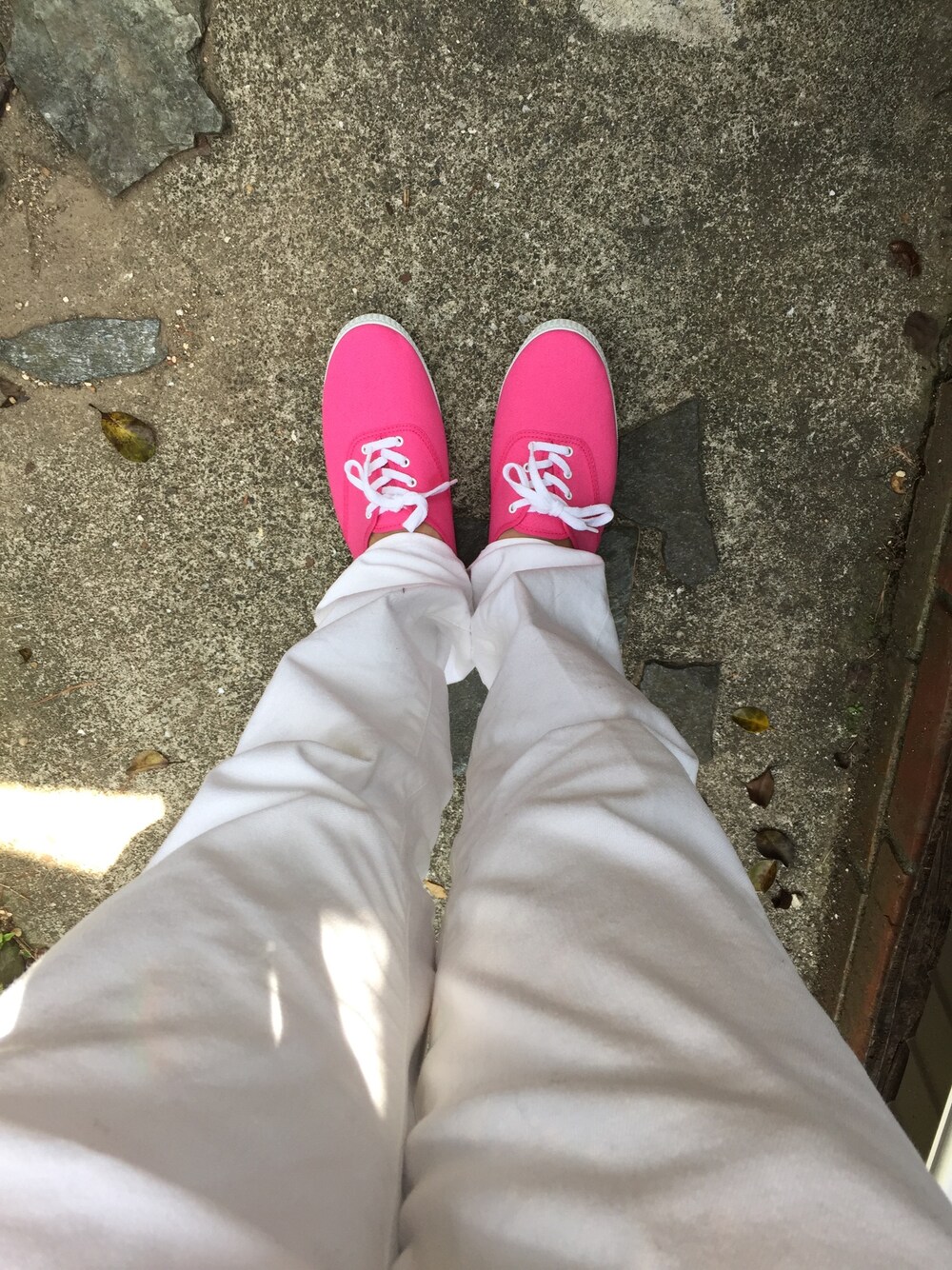 白パンにヴィクトリアのピンクのスニーカー(^ ^) 春ですね🎶