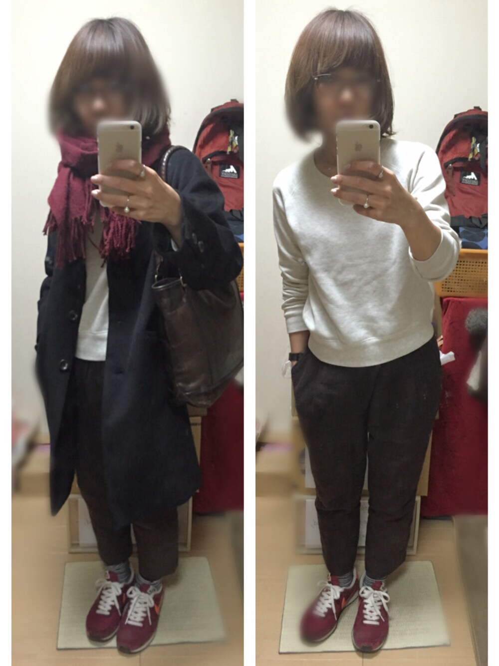 めがね:雑貨屋さん 前回と同じスニーカー履いてますが、日付的には2日間空いてます😎 今回もラフですね。楽チン、大好きです。 ただ、アウター脱ぐと寂しいので、せめてもの丸メガネ👓を装着。そしてこの日の男性ユーザーさんのピックアップタグが丸メガネでした。たまたま。 このメガネ、社内での評判はそこそこです(笑) 20150209