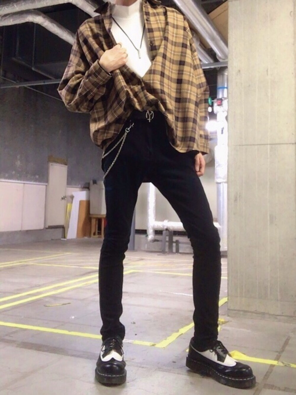 フロントのみタックインして 着崩すと、トップスが膨らんで より足が細長く見える気がする。 Instagram・sirokun_99
