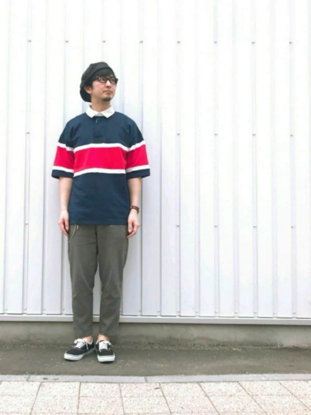 ししまるのキャスケット「NEW YORK HAT CASQUETTE CANVAS BIG APPLE BLACK」を使ったコーディネート