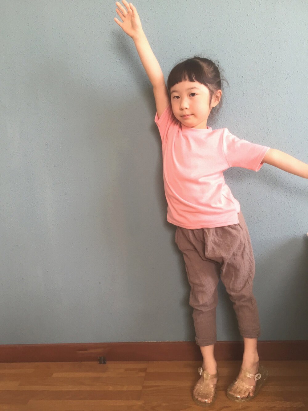 首の感じがちょうどいい♡半袖にサンダルの季節がやってくるー!!ピンクとカーキの組み合わせ、好き。